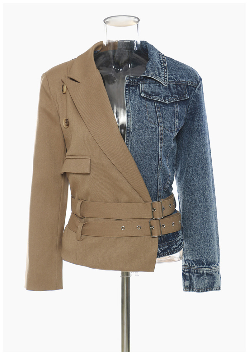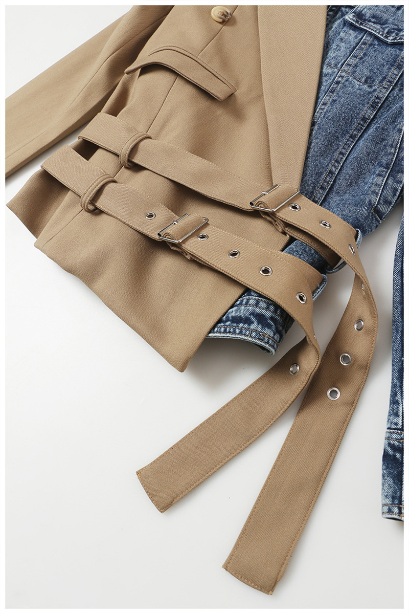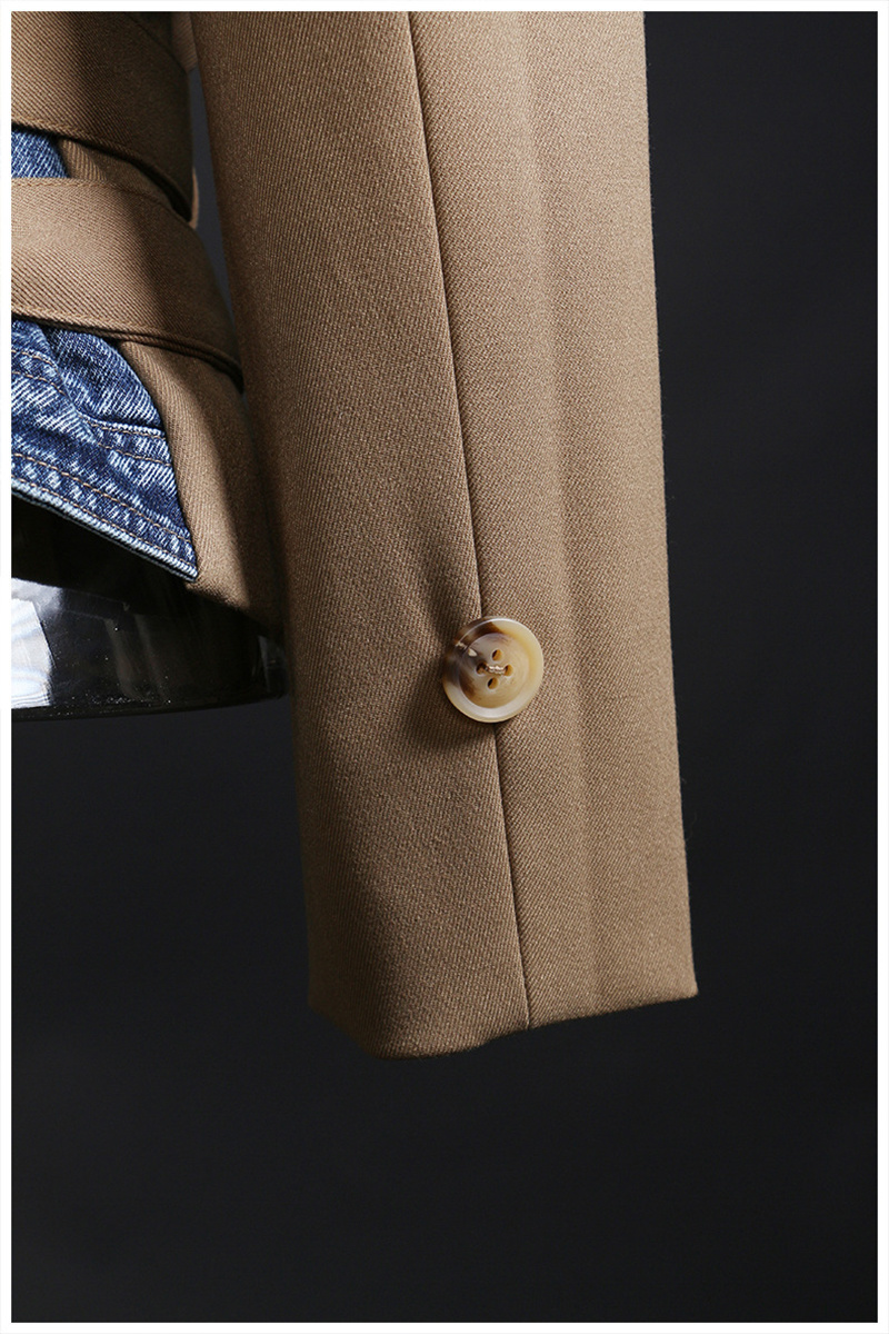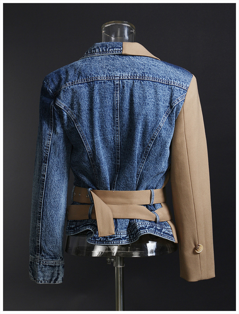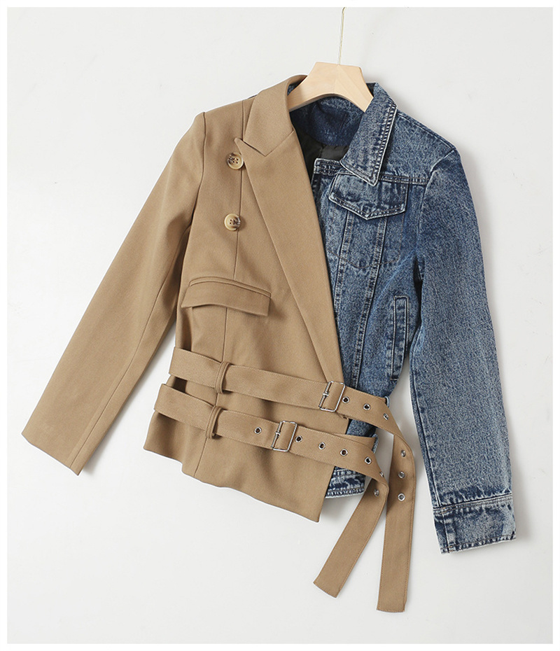 LONDON Khaki Denim Irregular Belted Jacket, New Long Sleeve Autumn Jacket