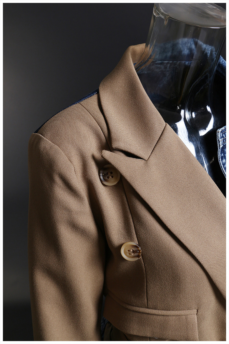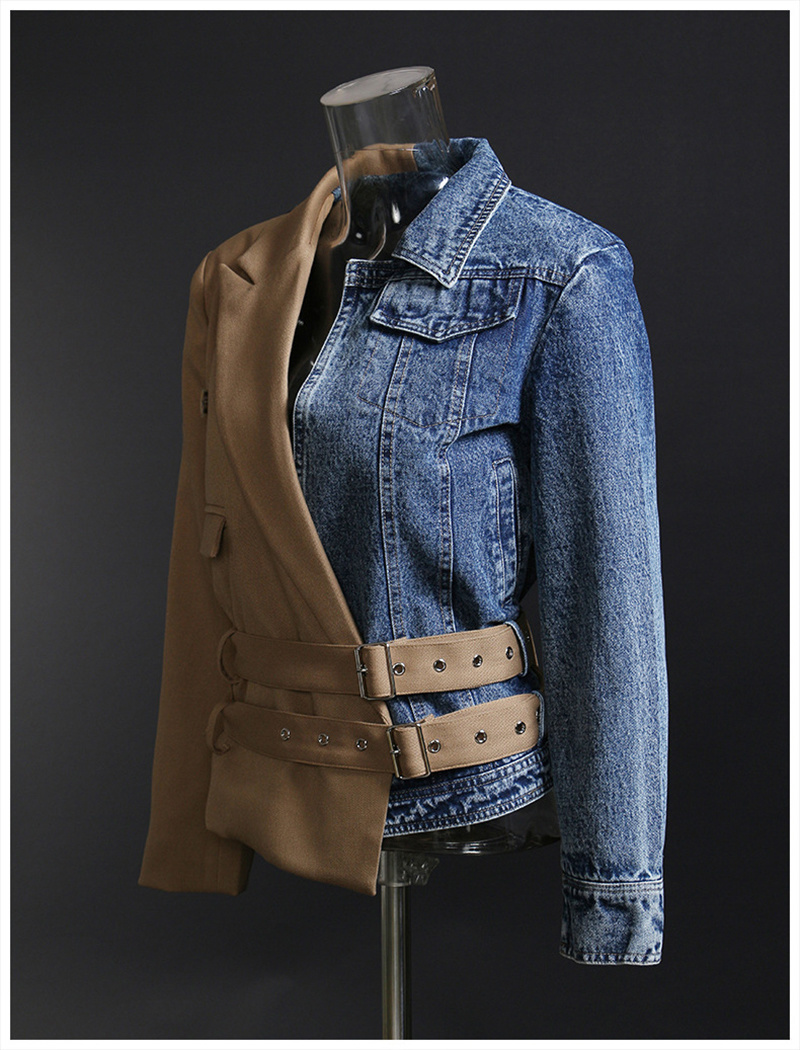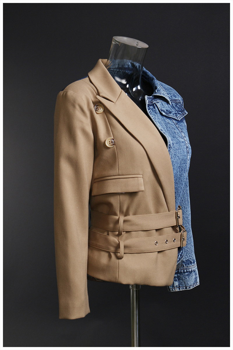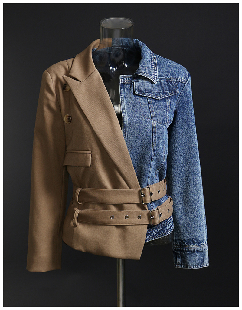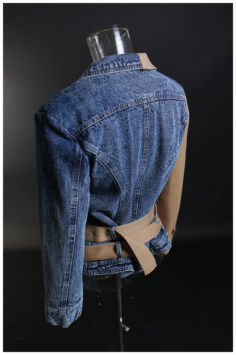 LONDON Khaki Denim Irregular Belted Jacket, New Long Sleeve Autumn Jacket
